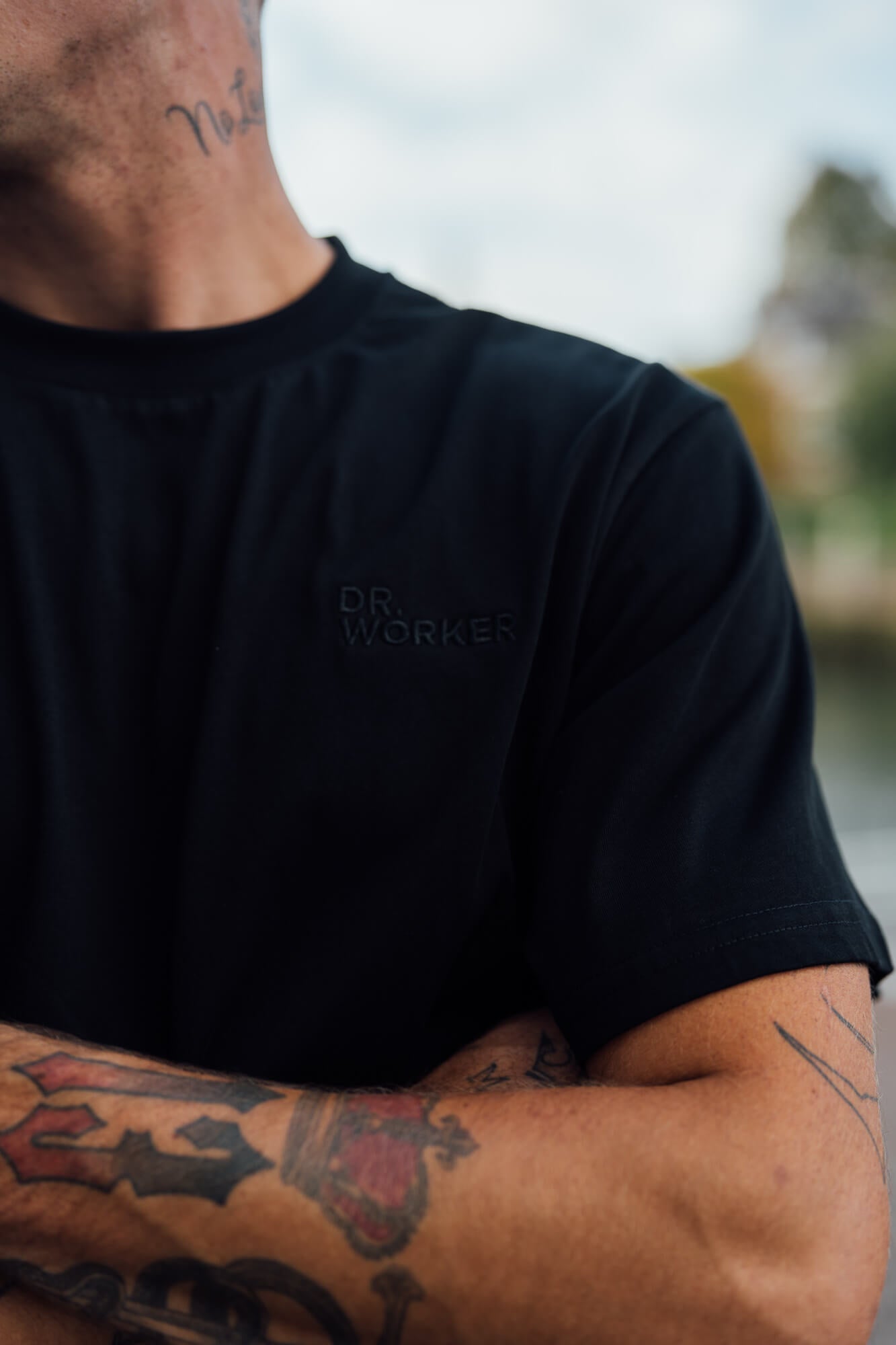 Simpel. Sterk. Altijd goed. Het Dr. Worker BASIC T-shirt is gemaakt van 100% ademend katoen in een comfortabele regular fit. Geen prints, geen poespas – alleen pure kwaliteit met een subtiel geborduurd Dr. Worker logo op de borst.
