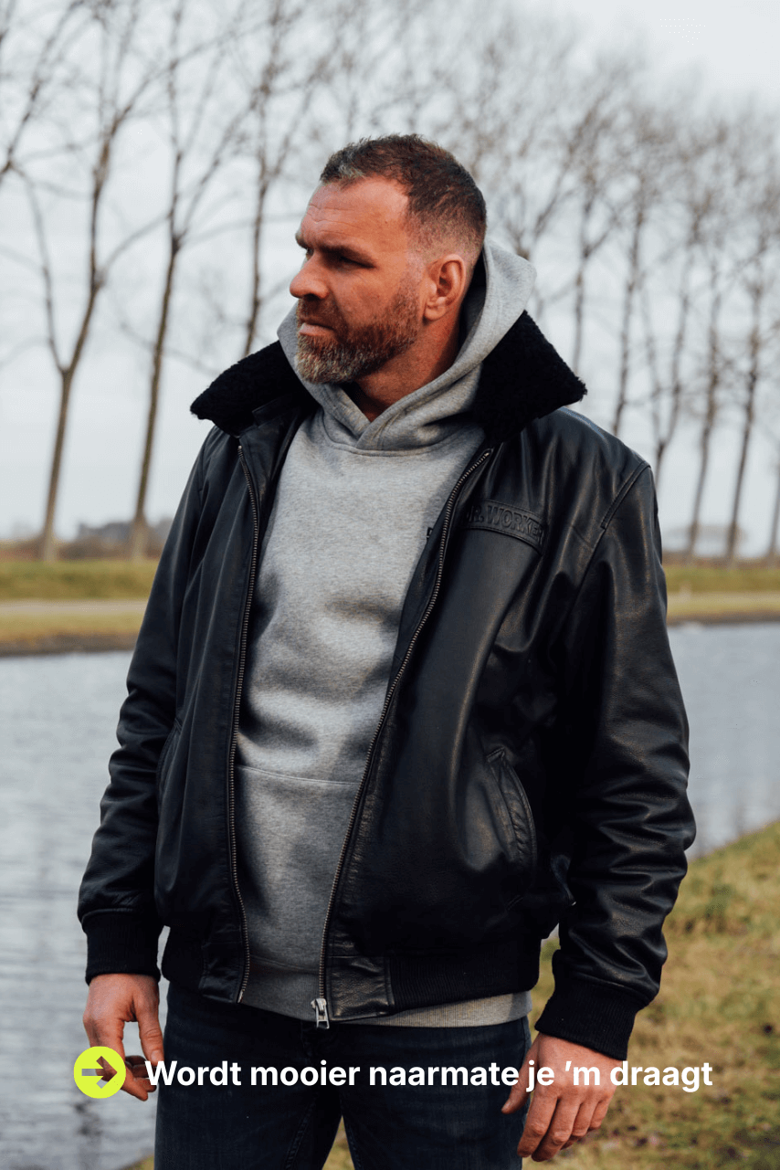 De Aviator Leren Jas is gemaakt van premium rundleer en gebouwd om jaren mee te gaan. Warm, stevig en tijdloos. Dit is geen mode-item, dit is een jas die met je meewerkt en met de jaren alleen maar beter wordt.