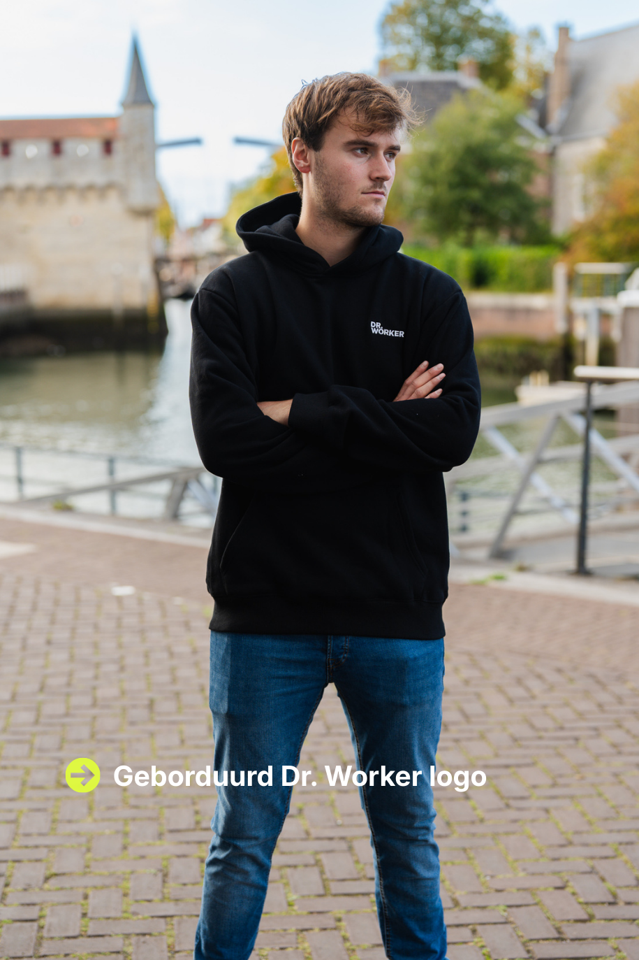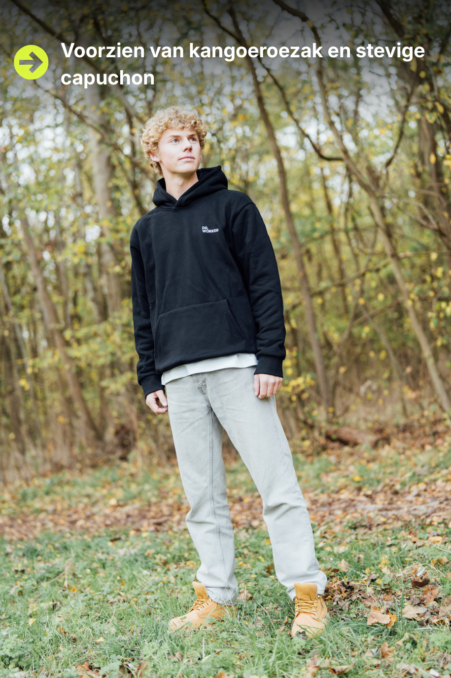 Der DR.WORKER Hoodie Werkse ist aus einem 400 gsm Premium-Stoff gefertigt – 80% Baumwolle und 20% Polyester. Diese Mischung verbindet den Komfort von Baumwolle mit der Robustheit von Polyester. Der Oversized Fit macht ihn gleichzeitig lässig und bequem.