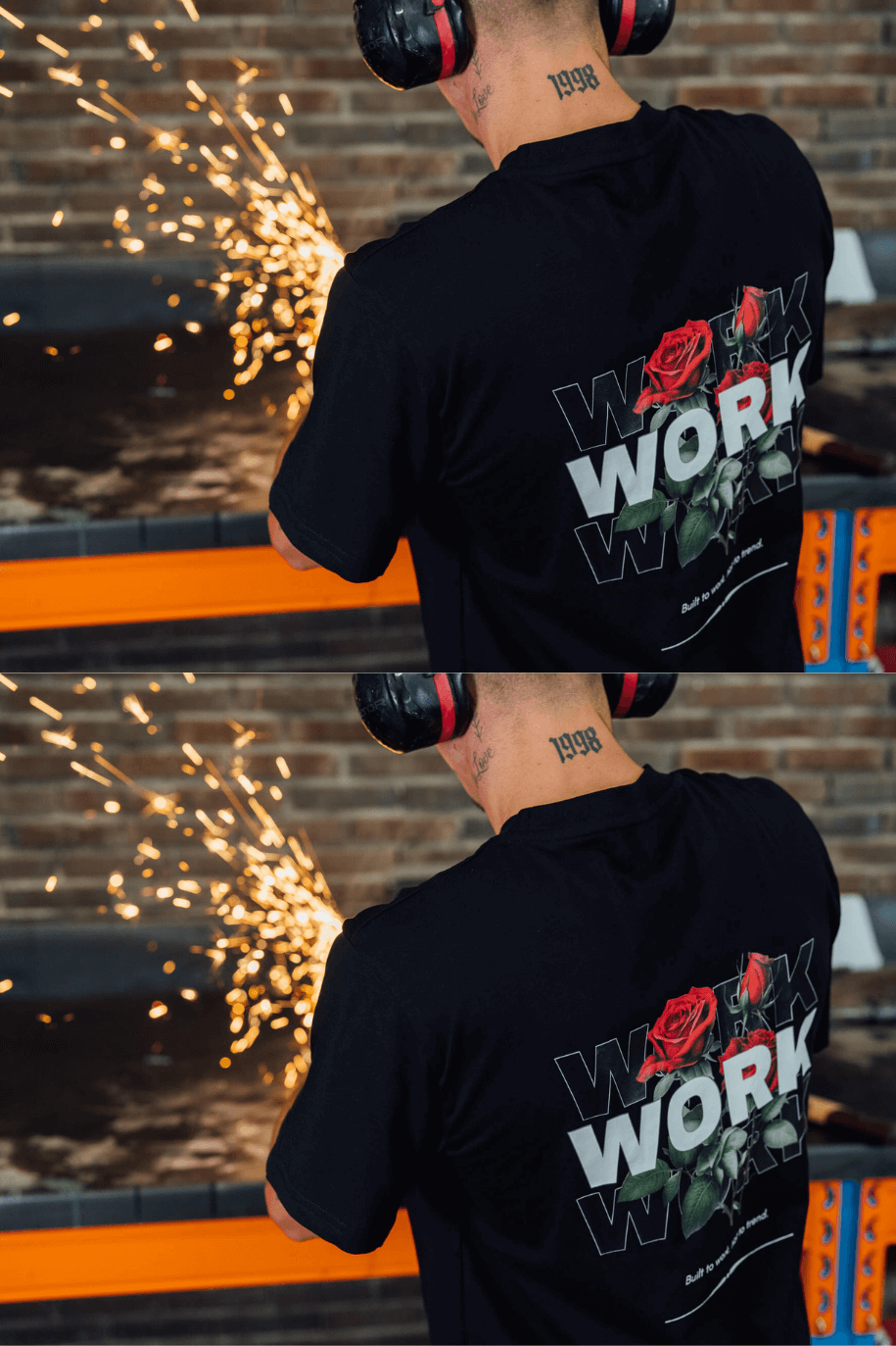Nous créons des vêtements qui reflètent le caractère. Pas pour la hype, mais pour le travail acharné et un style qui dure. Le T-shirt WORK WORK WORK en est l’exemple parfait.