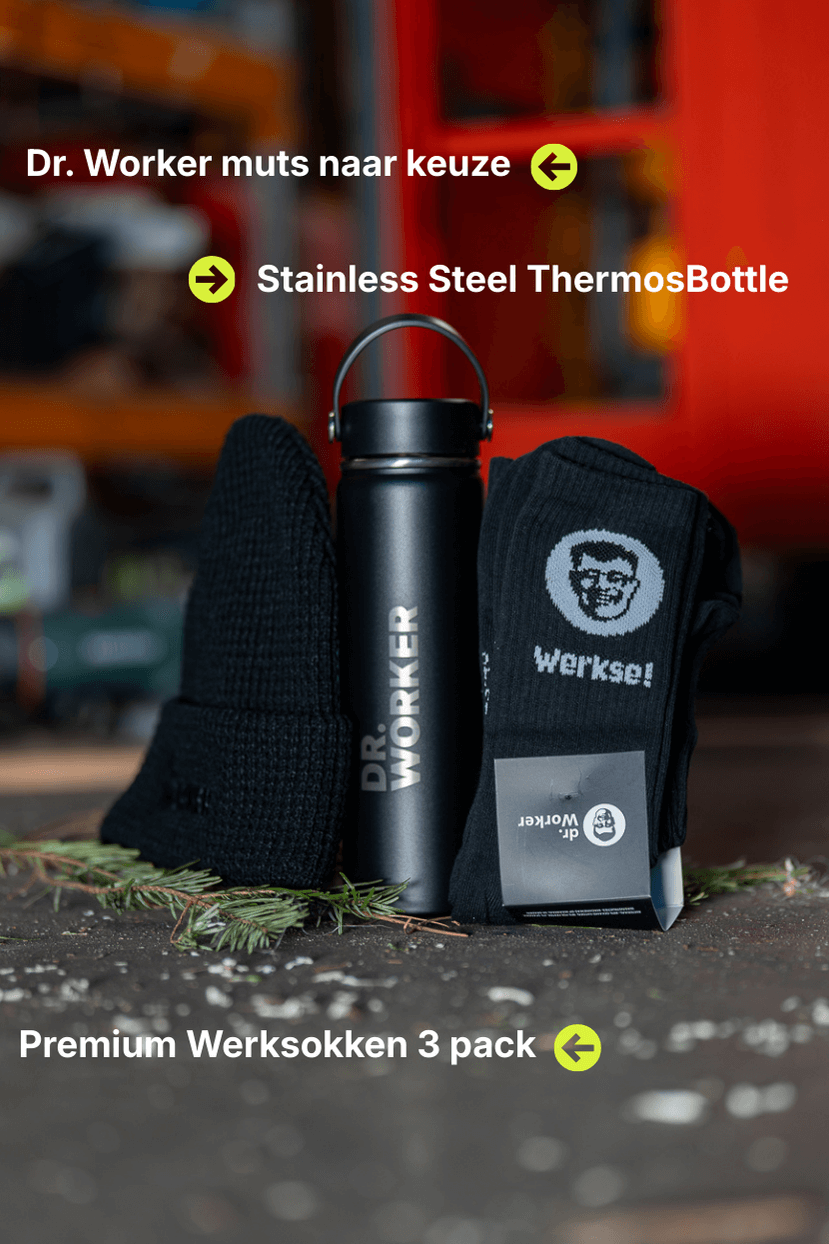 Muts + Premium Werksokken (3-pack) + Thermosfles